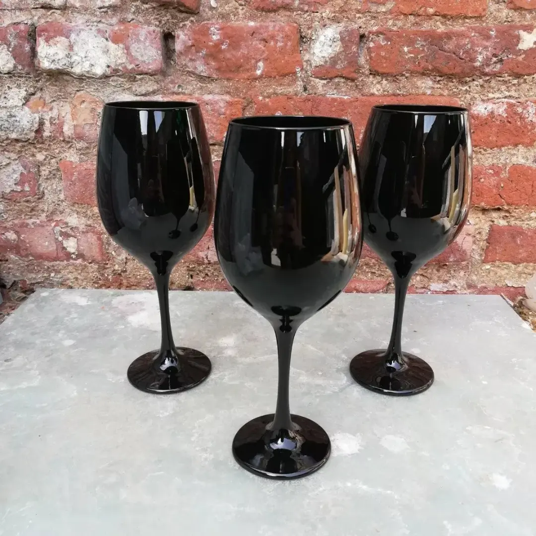 CARACTERÍSTICAS: Te presentamos este elegante set de 6 copas de vidrio negra, óptima calidad, ideal para la degustanción de tu bebida preferida, como vino o agua. El diseño de esta copa va a resaltar en tu mesa.