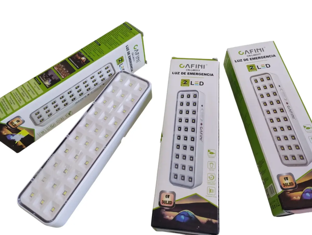Cuenta con 30 LEDs de alta luminosidad, brindando una iluminación potente y uniforme. Su batería recargable permite usarla sin necesidad de estar conectada a la corriente, convirtiéndola en una solución práctica y segura ante cualquier imprevisto.