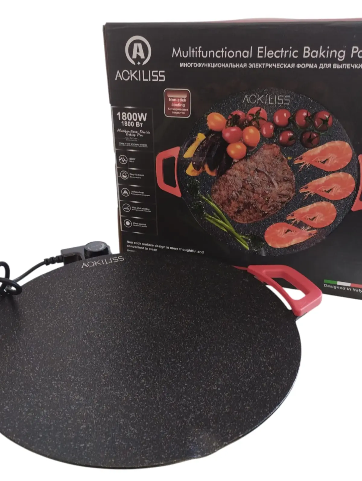 Gracias a su recubrimiento antiadherente, los alimentos no se pegan y la limpieza es mucho más sencilla. Su potencia de 1800W permite un calentamiento rápido y uniforme, logrando una cocción pareja en toda la superficie.